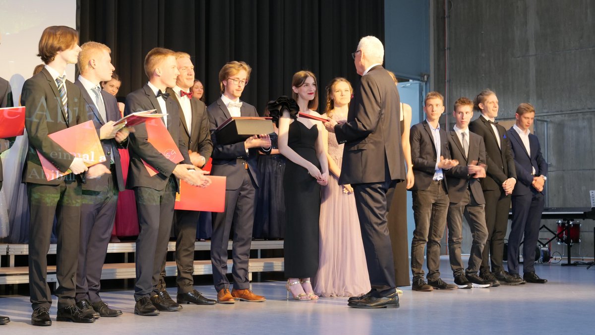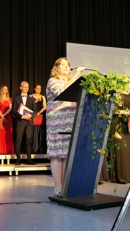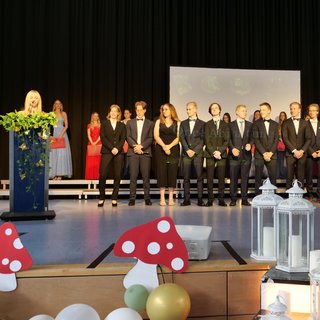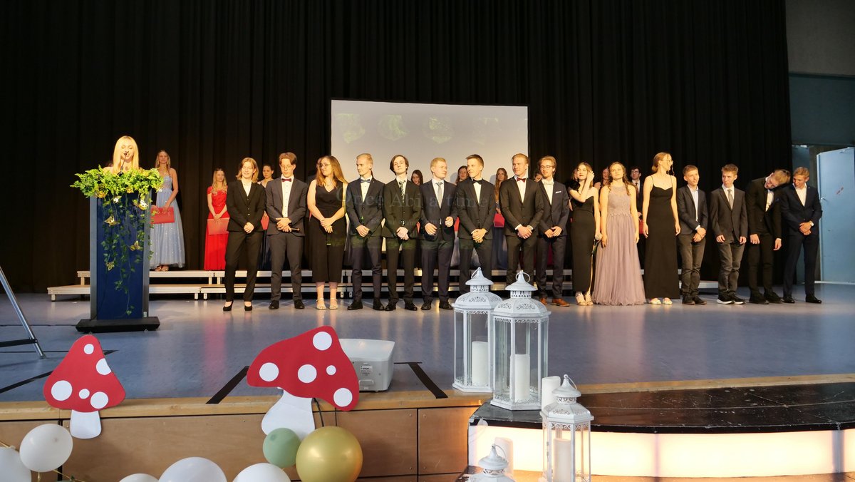 Nach diesen ermutigenden Worten folgte die feierliche Übergabe der Abiturzeugnisse, Preise und Belobigungen durch Dr. Gernert. Für die launigen Hinweise zur Schullaufbahn und zu Zukunftsplänen der AbiturientInnen durch die Lehrer und Lehrerinnen der verschiedenen Deutschkurse – Stefanie Hellinger, Lisa Bück, Benedikt Nübel (vertreten durch Martina Kinscher und Suzanna Trinczek) - boten die von den Schülern und Schülerinnen genannten Lieblingsmärchenfiguren ein schier unerschöpfliches Reservoir. Ein rundum gelungener Abend - passend zum ersten „normalen“ Abitur nach Corona.