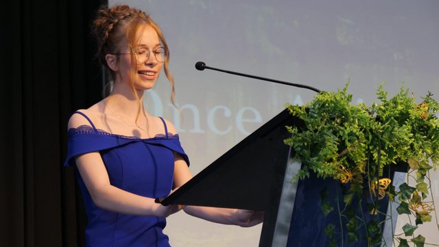 Auf die große Bedeutung von Märchen bei der „Bewältigung von Ängsten“ und dem „Verarbeiten von Krisen“ ging die diesjährige Scheffelpreisträgerin Maren Daub ausführlich ein. Dies sei beispielsweise auch bei dem Märchen „Hänsel und Gretel“ der Fall, thematisiere es doch das, was „den meisten von uns in der nächsten Zeit bevorsteht: das Stehen und Gehen auf eigenen Beinen, das Ablösen vom eigenen Elternhaus, die Verantwortung, nun auch alleine Probleme lösen zu müssen, ohne dass einem dabei geholfen wird.“ Bei diesem „Reifungsprozess“ sei es aber „völlig okay, auch mal Angst zu haben“, „das Gefühl zu haben, etwas nicht zu schaffen“. Aber „nur, wer sich seine Schwächen und Ängste eingesteht, kann diese bewältigen“. Mit dem Abitur in der Tasche, unseren „Siebenmeilenstiefeln“, könne man es getrost „mit seinen Ängsten und den Hexen und Rumpelstilzchen dieser Welt aufnehmen“.