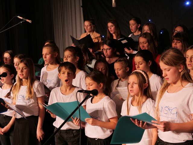 Den Auftakt des Beitrags der Chorellos und der Gesangsklasse bildete ein Friedenslied des Komponisten Peter Schindler. Dieses kleine Friedenslied führe eindrücklich vor Augen, dass der Frieden nicht immer im Großen und auf der internationalen Bühnen verhandelt werde, sondern dass er als Quelle dem Kleinen, dem Unsichtbaren und Unsagbaren innewohnt und von dort aus seine größte Wirkung erzielen könne.
