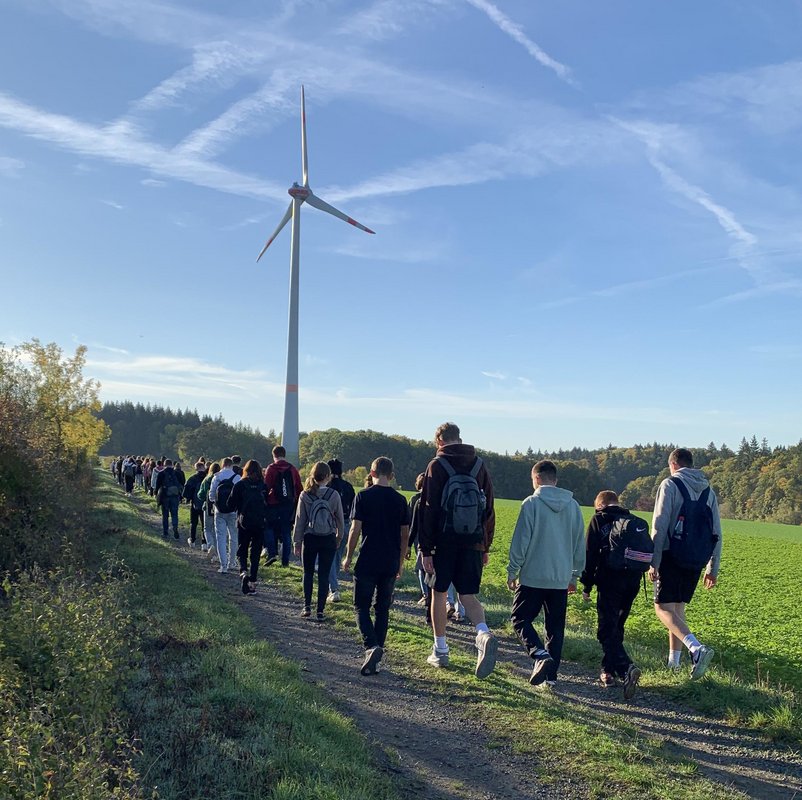 Ende Oktober nutzten die 11. Klassen das sonnige Herbstwetter, um verschiedene geologische Strukturen und Aufschlüsse an den Hängen des Taubertals und auf den Hochebenen von Heckfeld und Oberlauda zu erforschen. Zugleich konnten sich die Schülerinnen und Schüler anhand der Windenergieanlagen bei Heckfeld ein Bild verschiedener Anlagen machen, um vor Ort die Drehzahlen und Leistungsdaten der Anlage zu berechnen. Somit konnten sie das in der Theorie gelernte in der Praxis gleich anwenden. Ebenso zeigte ein Aufschluss sowie ein stillgelegtes Windradfundament auf der Gemarkung Boxberg-Oberschüpf nicht nur die geologische Struktur des oberen Muschelkalks, sondern auch die Eingriffe des Menschen in die Landschaftsstrukturen.